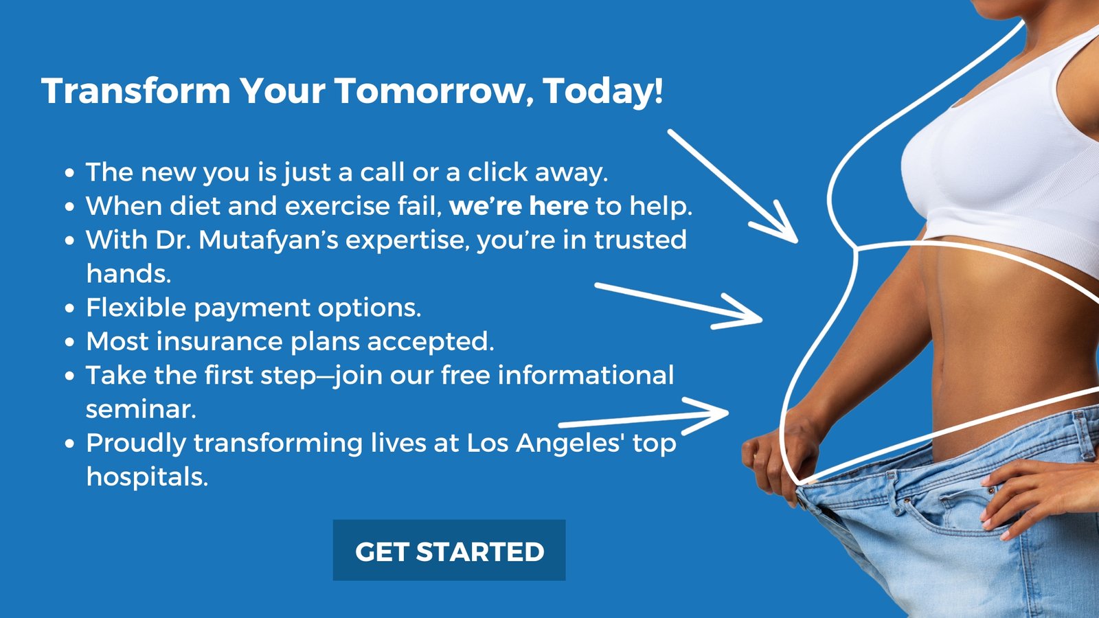 Dr. Mutafyan isn’t just one of LA’s best weight-loss surgeons—he’s your partner in transforming your tomorrow, today. 🎁 As a token of our appreciation, we’d love to send you a FREE Weight Loss Planner/Tracker to help you kickstart your weight-loss journey and track your progress—whether you choose surgery, injections, or even non-medical options like fad diets.