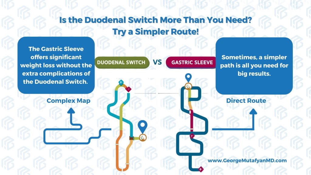 Let’s break down the duodenal switch, why it’s effective, and why Dr. Mutafyan might suggest going for a sleeve or bypass instead.